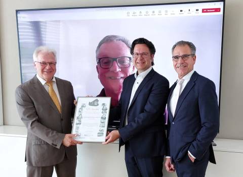 Auf dem Tisch die Urkunde, bereit zur Übergabe. Michael Rohr vom Bauindustrieverband NRW überreichte diese mit Worten des Lobes: