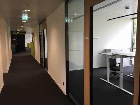 Der Bürobereich ist aufgeteilt in sogenannte Openspace-Offices, d.h. es gibt offene Büroflächen und eine Mittelzone, in der Besprechungs-Cubes und kleine Funktionsflächen wie Office/Print und Registratur zur Verfügung stehen.